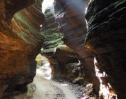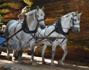 Visitors ride through a mile of cliff-walled gorges in comfortable yet quaint horse-drawn carriages. At the narrowest passages, the guides must talk the horses through the tight squeeze. In some of the deeper parts, the sheer rock and sandstone wall have not felt the touch of the sun in more than 50,000 years.