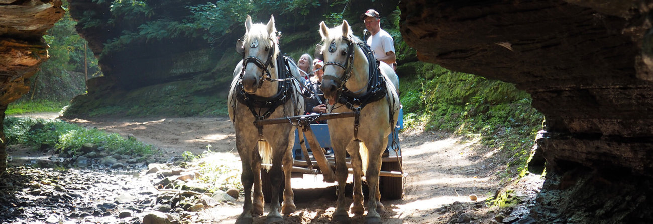 It was back in 1956 that Dr. R.O. Ebert started the horse-drawn wagon tours through Lost Canyon, the longest and deepest land canyon in Wisconsin. In 1967, the Kissack families took over the business and still operate it today, doing their part to maintain this natural treasure.